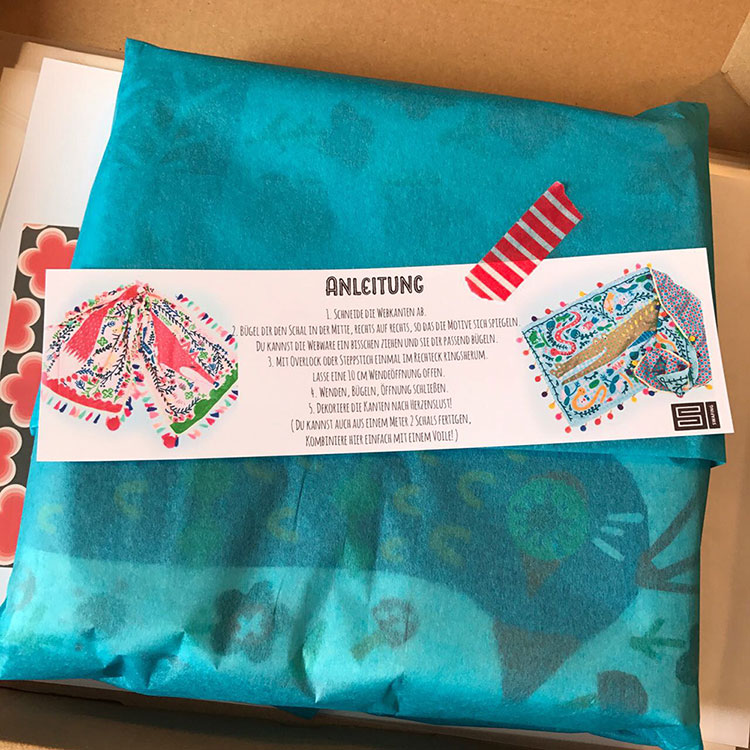 Now this is something very special! Brand new voile „Filou“ available now at Swafing! This breezy, lightweight cotton woven printed in a variety of fanciful designs can be stitched up in no time into absolutely stunning eye-catchers! Scarves are a classic fashion accessory, to add a bit of interest to any outfit or to ward off any chills the summer evening breezes may bring. A pretty „Filou“ scarf can go from the office to the playground without missing a beat. Simply stitch two „Filou“ panels along the short end and finish the edges with a rolled hem or any variety of trim. Why not try these trendy pom pon border or tassel fringe available from Cherry Picking? Stitch two layers together or use a contrasting fabric on the reverse to create your one-of-a-kind „Filou“ scarf. Are you looking for a little impulse purchase for your checkout counter? „Filou“ is terrific for creating quick all-in-one sewing kits complete with matching trims and ribbons.