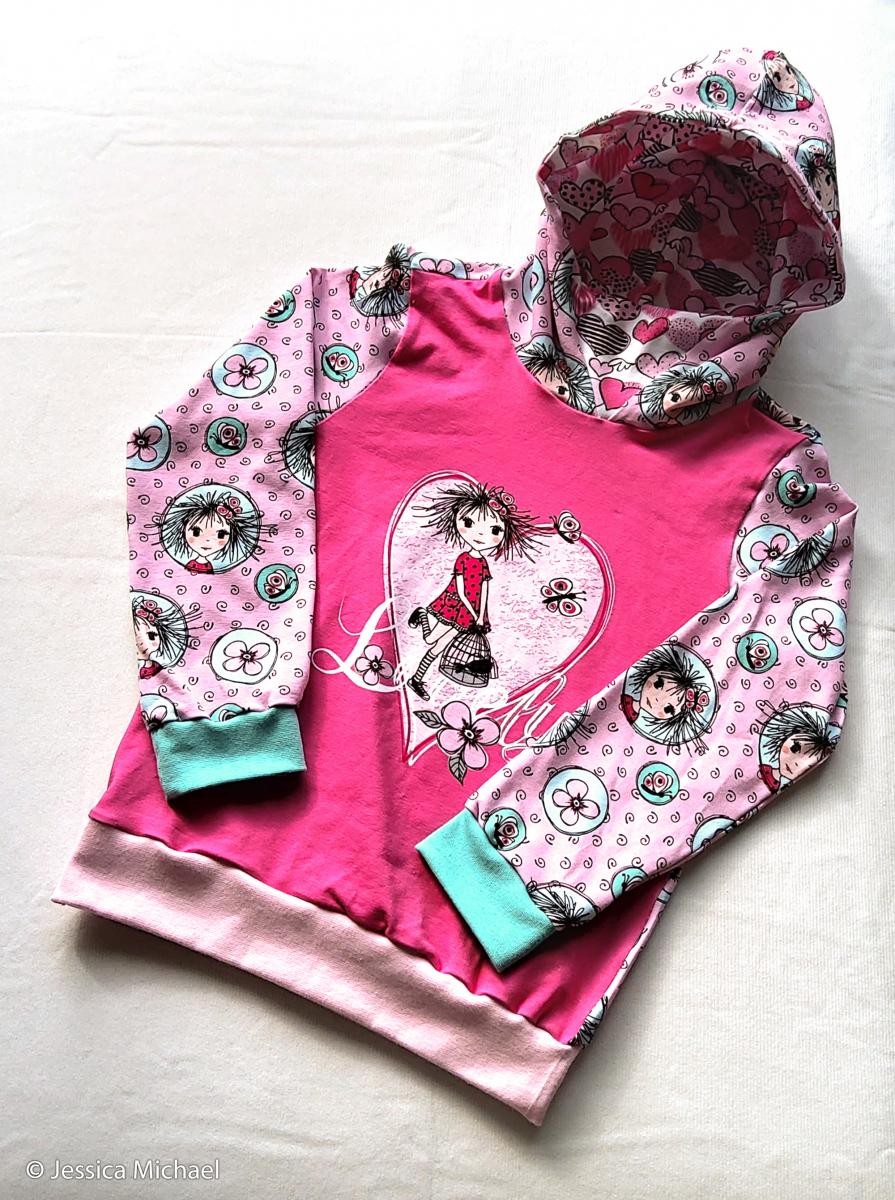 Jessica Michael: Hoodie Flo / Rockerbuben, Gr. 116. Kombiniert mit Heike in Fb. 432 und 261.