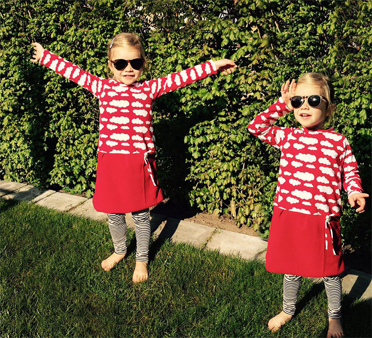 The little ones are also love „Dagi“: A snuggly original design dress sewn from sweater knit „Dagi“ and knit cloud jersey „Vernena“.